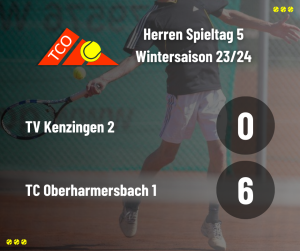 Mit 6:0 konnte die Herrenmannschaft des TC Oberharmersbach das Gastspiel am Samstag beim Tabellenletzten TV Kenzingen 2 klar für sich entscheiden. Somit gelang eine perfekte Wintersaison, in der jedes Spiel gewonnen werden konnte...